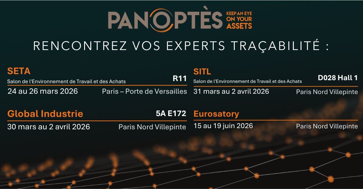Venez rencontrer nos experts RFID IoT traçabilité Panoptès en 2026 sur les salons. Ces événements seront l’occasion de rencontrer nos experts et de découvrir nos solutions de traçabilité, de digitalisation et d’optimisation des flux, boostées par l’IA.
